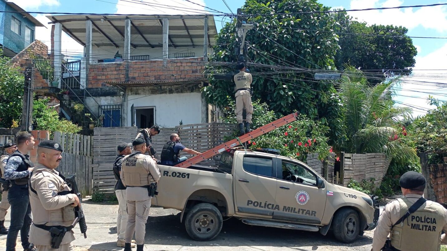 Redação Mais – Câmeras e equipamentos de videomonitoramento instaladas por grupos criminosos para monitoramento da atividade policial são removidas, na manhã desta terça-feira (30), durante a ‘Operação Olhos Fechados’.