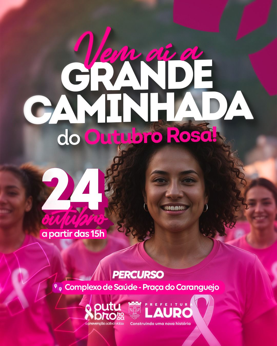 Redação Mais – A Prefeitura de Lauro de Freitas, por meio da Secretaria Municipal de Saúde (Sesa), convoca a população para um ato de conscientização sobre a importância do autocuidado. A Caminhada do Outubro Rosa vai ocupar as ruas da cidade a partir das 15h da próxima sexta-feira (24), com concentração no Complexo de Saúde e destino final na Praça do Caranguejo, em Itinga.