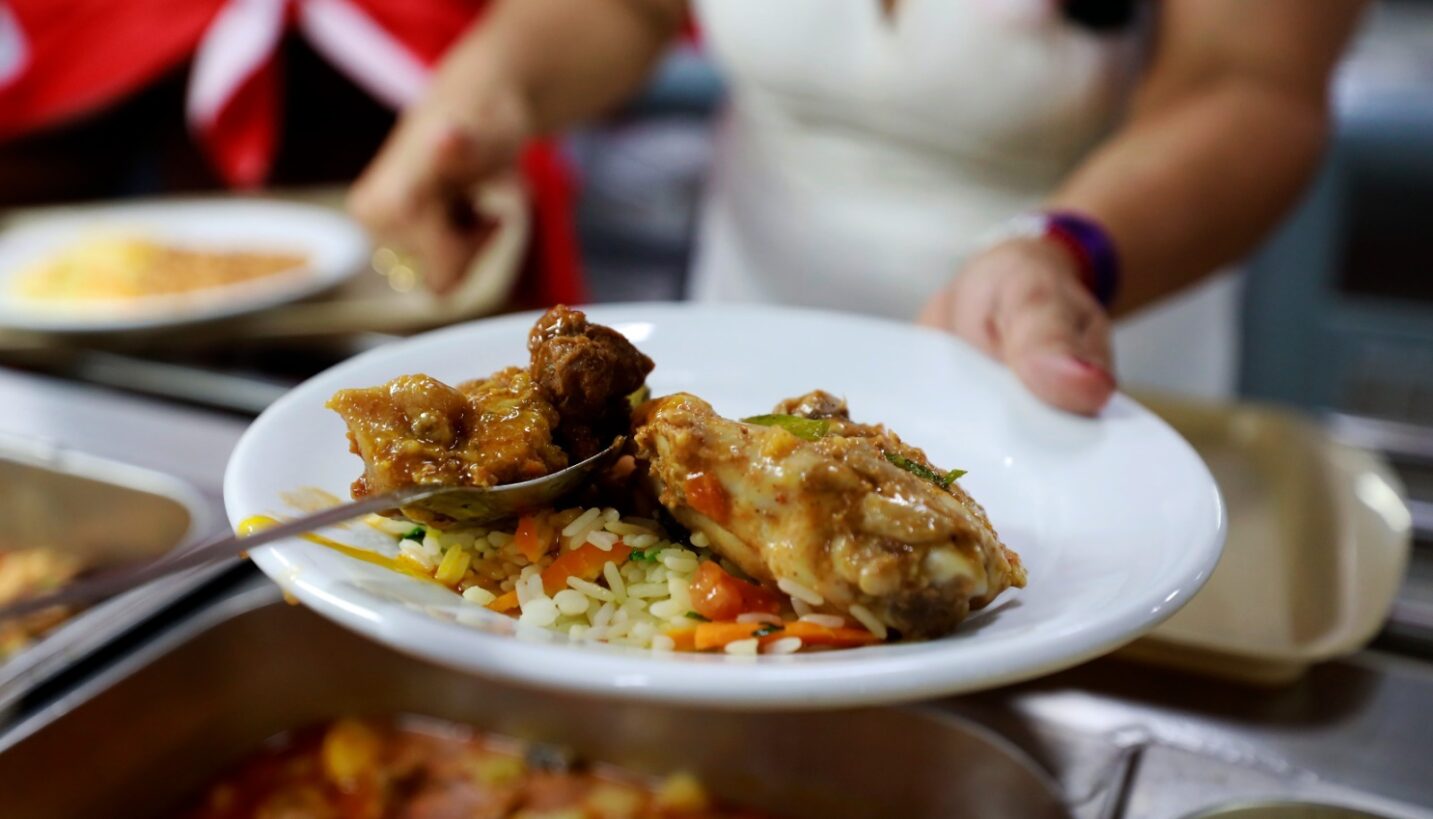 Cardápio natalino – E no clima natalino, o cardápio também ganhou um toque especial. O almoço contou com frango ao molho de ervas e pernil à Califórnia, acompanhados de arroz colorido, feijão, farofa rica e, para fechar, pudim natalino. “Garantir alimento para quem precisa não é só uma ação de hoje, é um trabalho feito o ano todo, com refeição segura e de qualidade. É um desafio, mas também uma grande satisfação, porque sabemos que estamos ajudando e abençoando a vida de muitas famílias”, complementou a nutricionista responsável pelo restaurante, Tamires Reis.