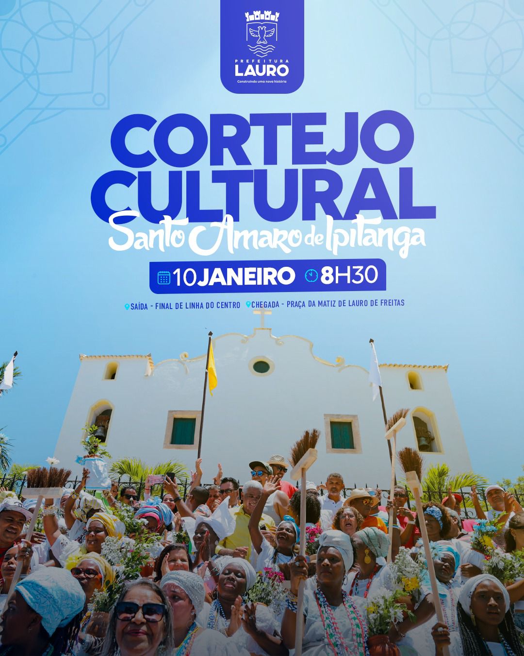 Redação Mais – Com muita fé, tradição e manifestações culturais, a Prefeitura de Lauro de Freitas, por meio da Secretaria Municipal de Cultura, Lazer, Juventude e Esporte (Seculje), realiza neste sábado (10) o tradicional Cortejo Cultural em homenagem a Santo Amaro de Ipitanga, padroeiro do município.