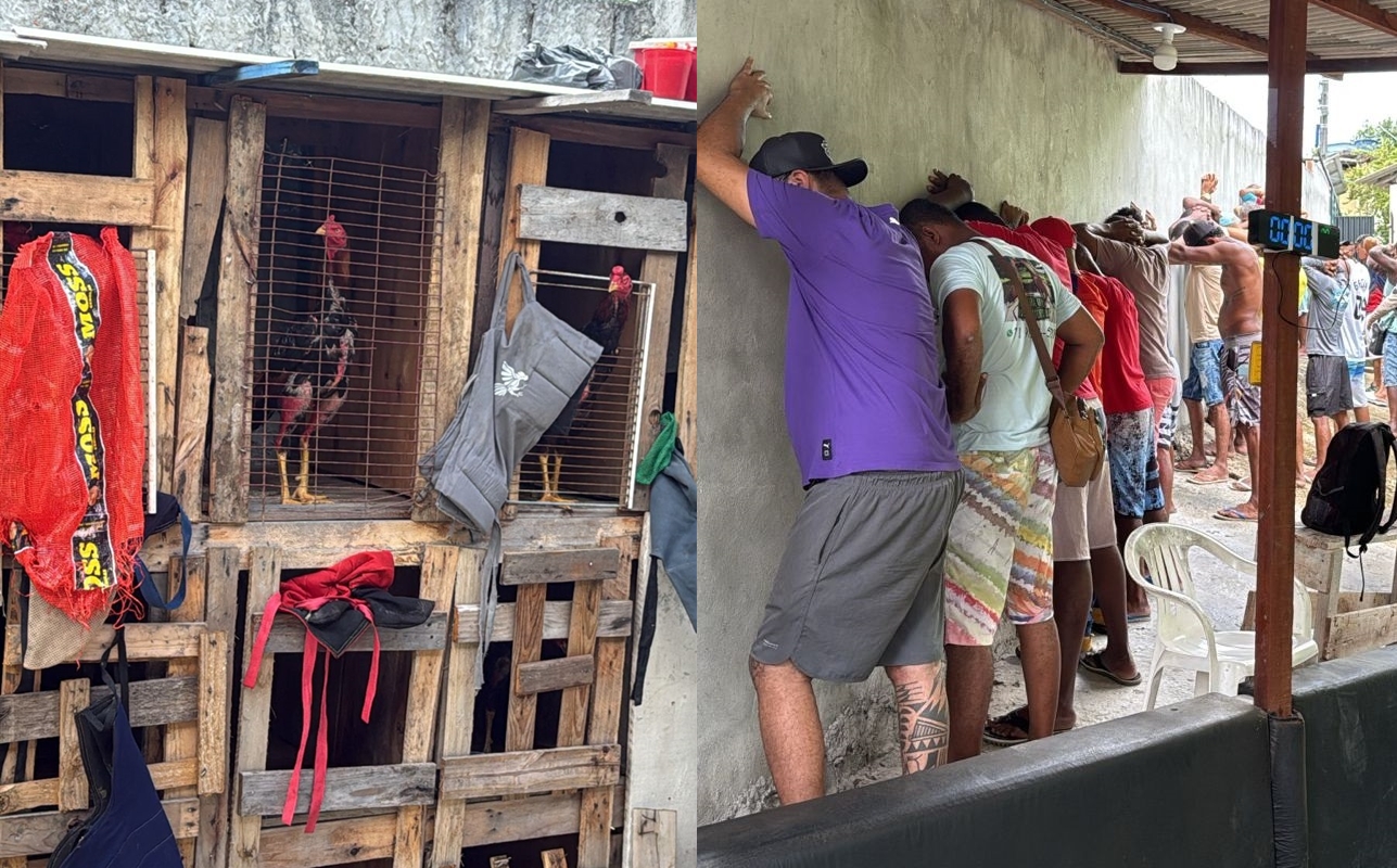 Os policiais realizavam patrulhamento quando foram acionados para averiguar denúncia de evento ilegal envolvendo rinha de galo, presença de indivíduos armados e possível tráfico de drogas na Rua Boa Esperança. As guarnições deslocaram para a localidade, onde flagraram diversas pessoas participando da atividade.